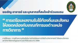 สถาบันวิจัยและพัฒนา มหาวิทยาลัยราชภัฏอุดรธานี ขอเชิญอาจารย์ บุคลากรที่สนใจ เข้าร่วมการอบรมหัวข้อ “การเตรียมผลงานรับใช้ท้องถิ่นและสังคม ให้สอดคล้องกับเกณฑ์การขอตำแหน่งทางวิชาการ”ประจำปีงบประมาณ 2569 วิทยากรโดย รองศาสตราจารย์