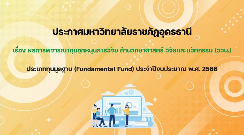 ข่าวประชาสัมพันธ์ด้านการวิจัย ประกาศมหาวิทยาลัยราชภัฏอุดรธานี เรื่อง ผลการพิจารณาทุนอุดหนุนการวิจัย ด้านวิทยาศาสตร์ วิจัยและนวัตกรรม (ววน.) ประเภททุนมูลฐาน (Fundamental Fund) ประจำปีงบประมาณ 2566 12 September 2022 rdiudru Download 19