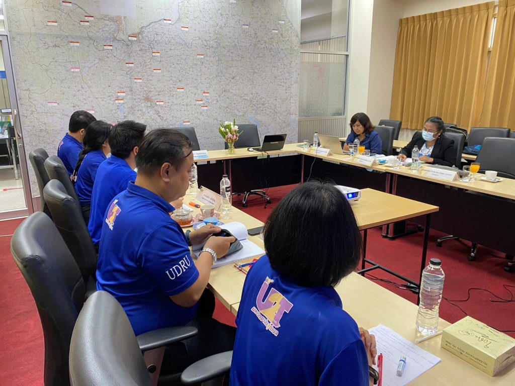 เวลา 08.30 น. วันที่ 30 มิถุนายน 2566 ผู้ช่วยศาสตราจารย์ ดร.คณิศรา ธัญสุนทรสกุล อธิการบดี มหาวิทยาลัยราชภัฏอุดรธานี ผู้ช่วยศาสตราจารย์ ดร.ปิยวดี ยาบุษดี ผู้อำนวยการ คณะผู้บริหารและบุคลากรสถาบันวิจัยและพัฒนา ร่วมให้การต้อนรับคณะกรรมการตรวจประเมิน ในการตรวจประเมินภายในตามเกณฑ์คุณภาพการศึกษาเพื่อการดำเนินการที่เป็นเลิศ (EdPEx) ประจำปีการศึกษา 2565 ณ ห้องประชุมชั้น 3 อาคารเฉลิมพระเกียรติ มหาวิทยาลัยราชภัฏอุดรธานี
