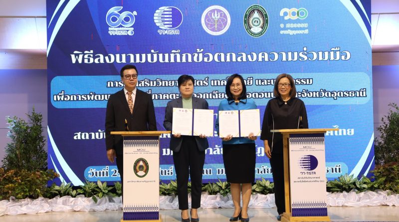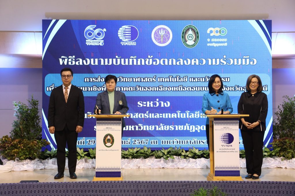 การลงนาม MOU ระหว่าง สถาบันวิจัยวิทยาศาสตร์และเทคโนโลยีแห่งประเทศไทย (วว.) กับ มรภ.อุดรธานี ขับเคลื่อนงานวิจัยและงานบริการพัฒนาเศรษฐกิจเชิงพื้นที่ อุดรธานี และภาคตะวันออกเฉียงเหนือตอนบน