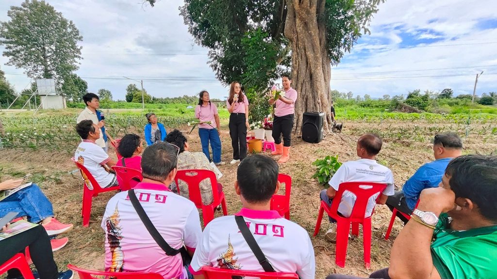ในโอกาสนี้ รองผู้อำนวยการ สถาบันวิจัยและพัฒนา ได้นำคณะเข้าเยี่ยมชมแปลงปทุมมาต้นแบบของเครือข่ายเกษตรกรผู้ปลูกปทุมมาจังหวัดอุดรธานี ภายใต้การดำเนินงานโครงการพัฒนาศูนย์ร่วมรู้การถ่ายทอดเทคโนโลยีการผลิตและใช้ประโยชน์จากปทุมมาครบวงจร ด้วยเศรษฐกิจ BCG เพื่อเป็นทางเลือกการสร้างรายได้ให้เกษตรกร ภายใต้การสนับสนุนและดำเนินงานโดยศูนย์วิทยาศาสตร์และเทคโนโลยีเพื่อการวิจัยและพัฒนาท้องถิ่น