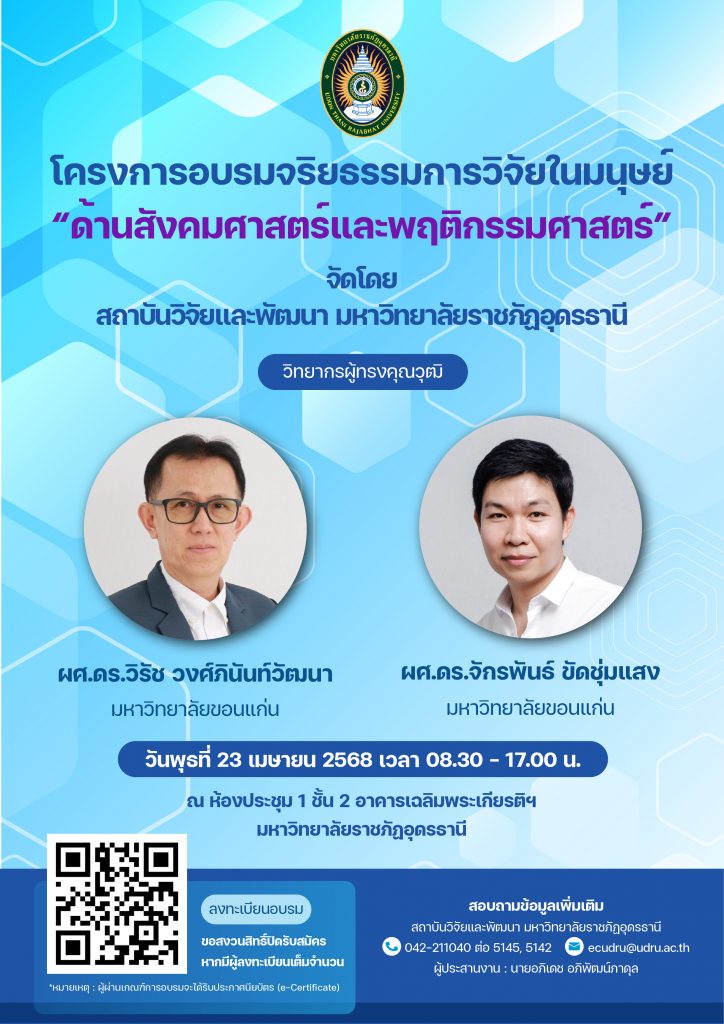 สถาบันวิจัยและพัฒนา มหาวิทยาลัยราชภัฏอุดรธานี ขอเชิญอาจารย์ นักวิจัย และบุคลากร มหาวิทยาลัยราชภัฏอุดรธานี