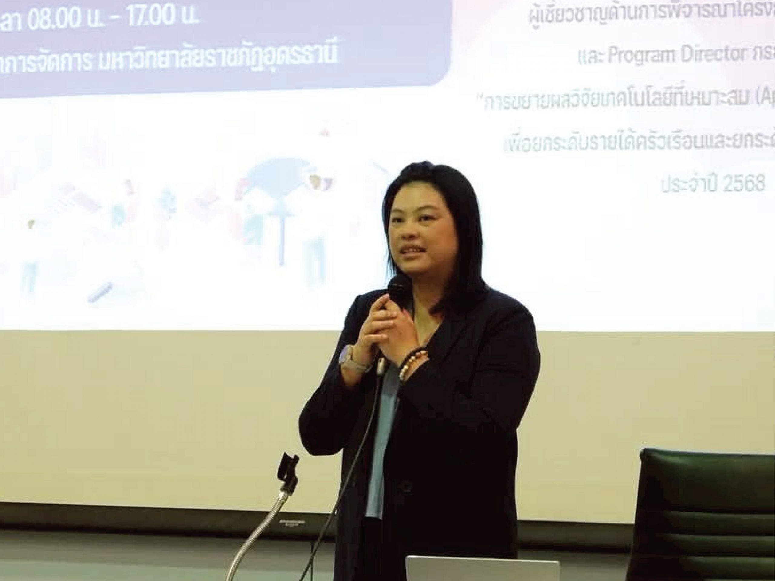 วันศุกร์ที่ 25 เมษายน 2568 เวลา 09.00 น. ณ ห้องประชุมดอกปีป คณะวิทยาการจัดการ ผศ.ดร.สาวิตรี บุญมี รองอธิการบดี เป็นประธานเปิดโครงการฝึกอบรมเชิงปฏิบัติการ “พัฒนาศักยภาพนักวิจัยด้านการเขียนแผนงาน/ข้อเสนอโครงการโดยประยุกต์ใช้เทคนิคและเครื่องมือการออกแบบงานวิจัย เพื่อหนุนเสริมคุณภาพการวิจัยให้เหมาะกับบริบทของพื้นที่” ซึ่งเป็นโครงการย่อยภายใต้กรอบ : การสร้างความเข้มแข็งในการดำเนินโครงการวิจัยด้านวิทยาศาสตร์ วิจัยและนวัตกรรม มหาวิทยาลัยราชภัฏอุดรธานี ประจำปีงบประมาณ 2568 มหาวิทยาลัยราชภัฏอุดรธานี และ ผศ.ดร.ปิยวดี ยาบุษดี ผู้อำนวยการสถาบันวิจัยและพัฒนา กล่าวรายงานวัตถุประสงค์โครงการ เพื่อส่งเสริมความรู้ความเข้าใจและเทคนิคในการพัฒนาข้อเสนอโครงการที่จะนำไปสู่ขีดความสามารถด้านการพัฒนาข้อเสนอโครงการวิจัยที่มีศักยภาพยกระดับการแข่งขันด้านการวิจัยเพื่อก้าวสู่การเป็นนักวิจัยมืออาชีพ โดยได้รับเกียรติจาก รองศาสตราจารย์ ดร.พีรเดช ทองอำไพ ผู้เชี่ยวชาญด้านการพิจารณาโครงการแหล่งทุน PMU และ Program Director กรอบการวิจัย “การขยายผลวิจัยเทคโนโลยีที่เหมาะสม (Appropriate Technology) เพื่อยกระดับรายได้ครัวเรือนและยกระดับเศรษฐกิจฐานราก” ประจำปี 2568 เป็นวิทยากร
