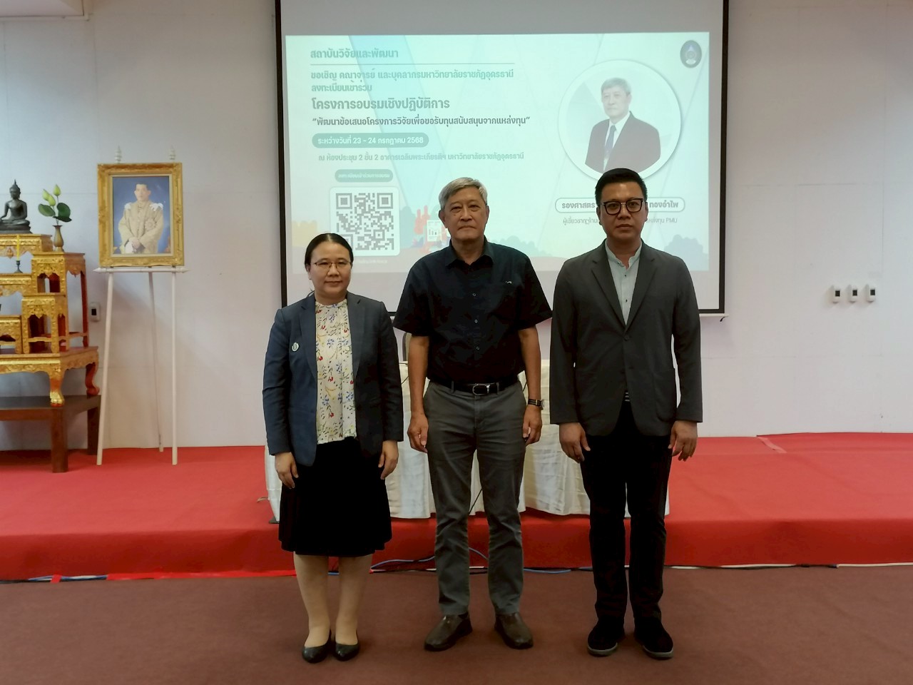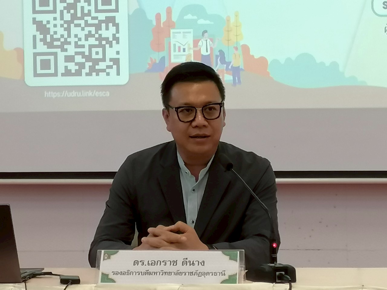 วันที่ 23 – 24 กรกฎาคม 2568 ณ ห้องประชุม 2 ชั้น 2 อาคารเฉลิมพระเกียรติฯ ดร.เอกราช ดีนาง รองอธิการมหาวิทยาลัยราชภัฏอุดรธานี เป็นประธานเปิด โครงการฝึกอบรมเชิงปฏิบัติการ “พัฒนาข้อเสนอโครงการวิจัยเพื่อขอรับการสนับสนุนจากแหล่งทุน” ซึ่งเป็นโครงการภายใต้แผนปฏิบัติการกองทุนวิจัย เพื่อทำกิจกรรม ส่งเสริม สนับสนุน และขับเคลื่อนระบบการวิจัยและนวัตกรรมของมหาวิทยาลัย โดย ผศ.ดร.ปิยวดี ยาบุษดี ผู้อำนวยการสถาบันวิจัยและพัฒนา กล่าวรายงานวัตถุประสงค์โครงการ เพื่อส่งเสริมให้บุคลากรของมหาวิทยาลัยได้ตระหนักถึงความสำคัญของหลักวิชาการ รวมทั้งพัฒนาศักยภาพของคณาจารย์ นักวิจัย และเจ้าหน้าที่วิจัยที่มีอยู่ และสร้างนักวิจัยรุ่นใหม่ให้เกิดขึ้นอย่างมีคุณภาพ โดยการลงมือปฏิบัติ ร่วมกับแลกเปลี่ยนเรียนรู้จากผู้ทรงคุณวุฒิ โดยได้รับเกียรติจาก รองศาสตราจารย์ ดร.พีรเดช ทองอำไพ ผู้เชี่ยวชาญด้านการพิจารณาโครงการแหล่งทุน PMU เป็นวิทยากร ซึ่งมีผู้เข้าร่วมการอบรมครั้งนี้ จำนวน 50 คน
