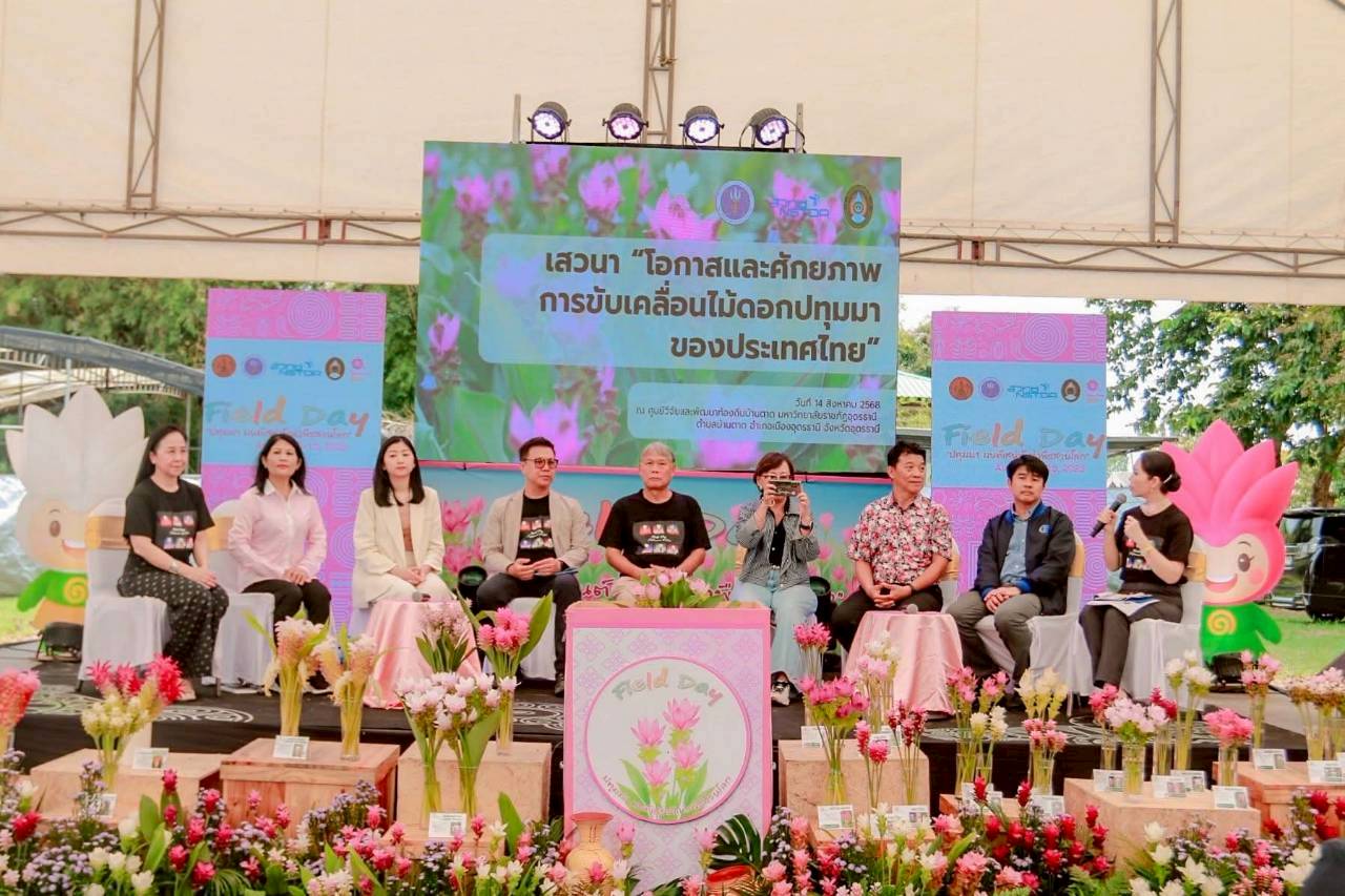 วันที่ 13 – 15 สิงหาคม 2568 ณ ศูนย์วิจัยและพัฒนาท้องถิ่นบ้านตาด มหาวิทยาลัยราชภัฏอุดรธานี ต.บ้านตาด อ.เมืองอุดรธานี จ.อุดรธานี มหาวิทยาลัยราชภัฏอุดรธานี ร่วมกับ สำนักงานพัฒนาวิทยาศาสตร์และเทคโนโลยีแห่งชาติ (สวทช.) จัดงาน โครงการถ่ายทอดเทคโนโลยีดอกไม้ปทุมมาตลอดห่วงโซ่การผลิต “Field Day ปทุมมา มนต์เสน่ห์แห่งพืชสวนโลก” โดยมีวัตถุประสงค์ เพื่อถ่ายทอดองค์ความรู้และเทคโนโลยีเกี่ยวกับสายพันธุ์ปทุมมา กระบวนการผลิตอย่างครบวงจร และเปิดโอกาสให้ผู้มีส่วนได้ส่วนเสียเข้าถึงองค์ความรู้และเทคโนโลยี สร้างเครือข่ายความร่วมมือระหว่างเกษตรกรผู้ผลิต และผู้ประกอบการในระดับท้องถิ่น และระดับประเทศ เผยแพร่ประชาสัมพันธ์ความก้าวหน้าการวิจัยพัฒนาพันธุ์และการผลิตปทุมมาของประเทศไทย เพื่อเตรียมความพร้อมสู่งานมหกรรมพืชสวนโลก จังหวัดอุดรธานีในปี 2569