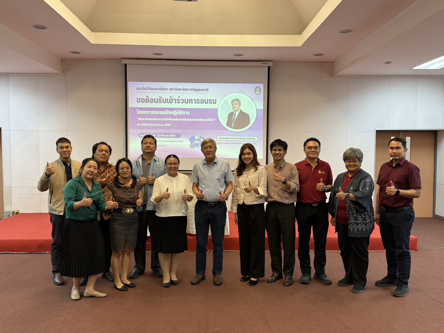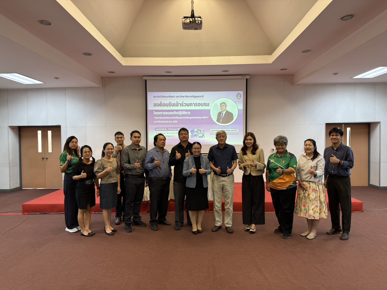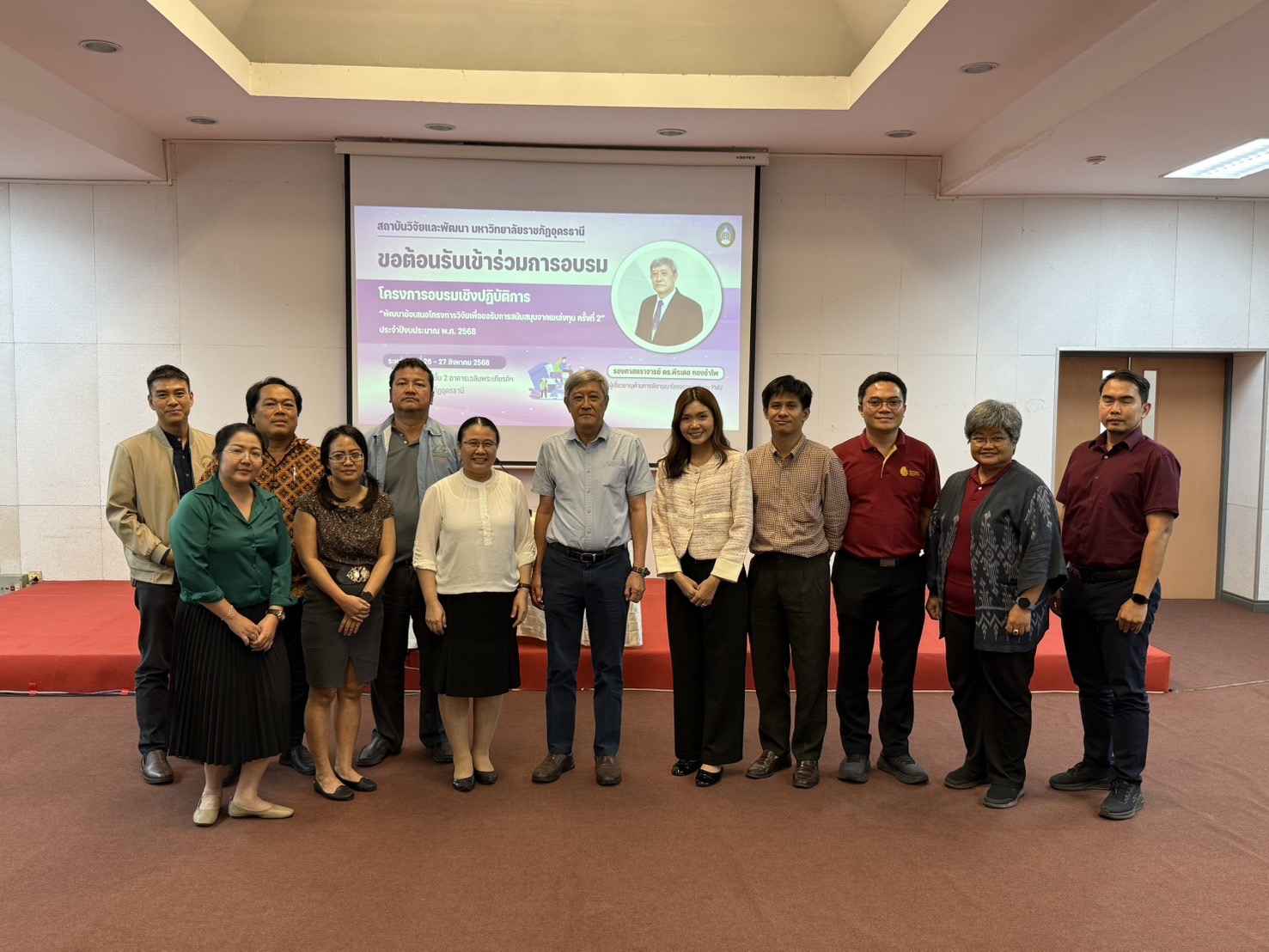 วันที่ 26 – 27 สิงหาคม 2568 ณ ห้องประชุม 2 ชั้น 2 อาคารเฉลิมพระเกียรติฯ โดย ผศ.ดร.ปิยวดี ยาบุษดี ผู้อำนวยการสถาบันวิจัยและพัฒนา เป็นประธานเปิด โครงการฝึกอบรมเชิงปฏิบัติการ “พัฒนาข้อเสนอโครงการวิจัยเพื่อขอรับการสนับสนุนจากแหล่งทุน ครั้งที่ 2” ประจำปีงบประมาณ พ.ศ. 2568 ซึ่งเป็นโครงการภายใต้แผนปฏิบัติการกองทุนวิจัย เพื่อทำกิจกรรม ส่งเสริม สนับสนุน และขับเคลื่อนระบบการวิจัยและนวัตกรรมของมหาวิทยาลัย โดยวัตถุประสงค์โครงการ เพื่อส่งเสริมให้บุคลากรของมหาวิทยาลัยได้ตระหนักถึงความสำคัญของหลักวิชาการ รวมทั้งพัฒนาศักยภาพของคณาจารย์ นักวิจัย และเจ้าหน้าที่วิจัยที่มีอยู่ และสร้างนักวิจัยรุ่นใหม่ให้เกิดขึ้นอย่างมีคุณภาพ โดยการลงมือปฏิบัติ ร่วมกับแลกเปลี่ยนเรียนรู้จากผู้ทรงคุณวุฒิ การอบรมครั้งนี้ได้รับเกียรติจาก รองศาสตราจารย์ ดร.พีรเดช ทองอำไพ ผู้เชี่ยวชาญด้านการพิจารณาโครงการแหล่งทุน PMU เป็นวิทยากร ซึ่งมีผู้เข้าร่วมการอบรม จำนวน 30 คน
