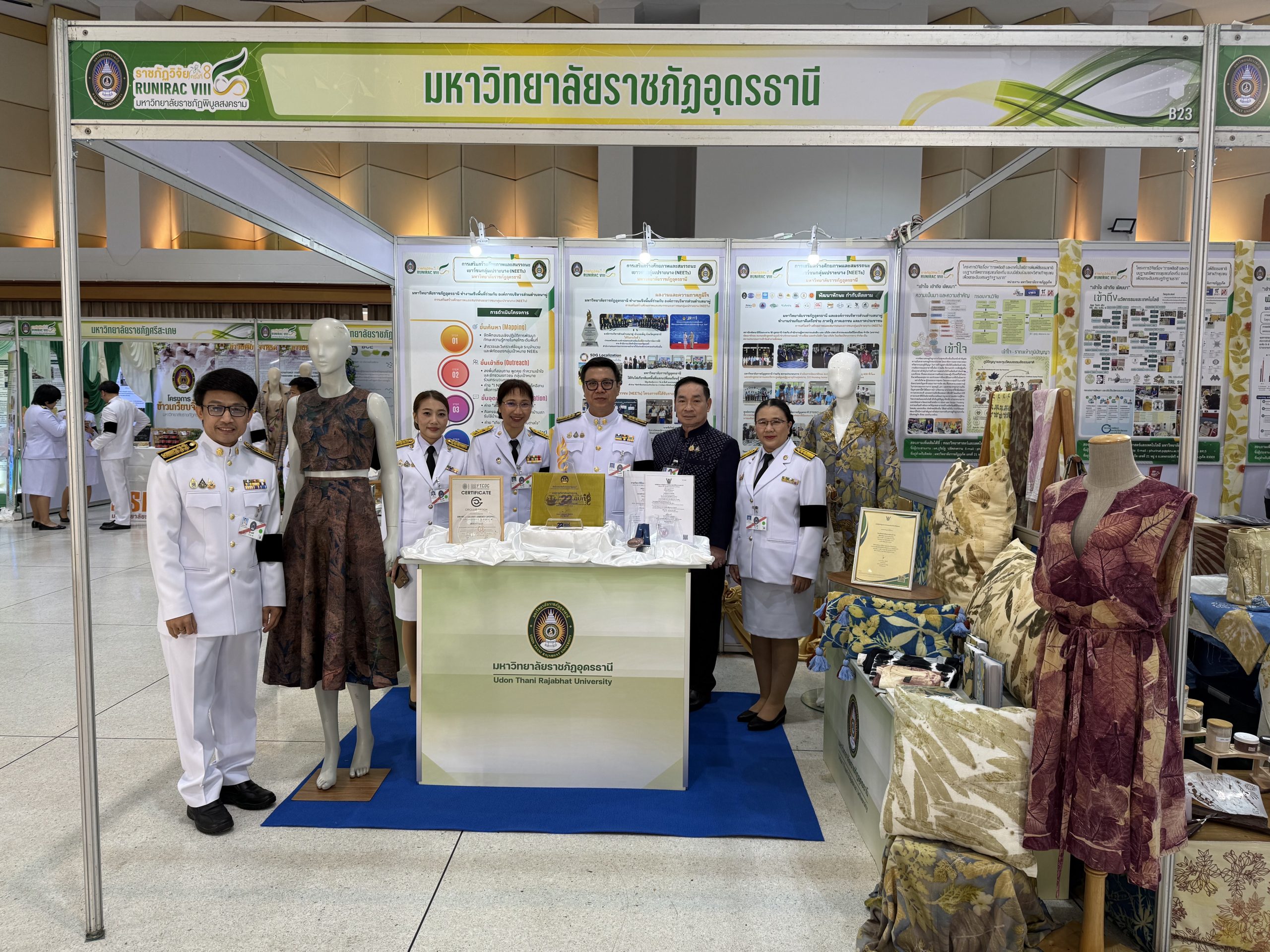 มหาวิทยาลัยราชภัฏอุดรธานี โดยสถาบันวิจัยและพัฒนา ได้นำ รองศาสตราจารย์ ดร.ยุภาดี ปณะราช นักวิจัยดีเด่น สาขาการศึกษา และ นายอำนวย อินทรธิราช นายกองค์การบริหารส่วนตำบลนาพู่ อำเภอเพ็ญ จังหวัดอุดรธานี นักวิจัยชุมชนดีเด่น มหาวิทยาลัยราชภัฏอุดรธานี เข้ารับพระราชทานโล่รางวัลเชิดชูเกียรติ โดย พระบาทสมเด็จพระเจ้าอยู่หัวฯ ทรงพระกรุณาโปรดเกล้าฯ ให้ พันเอก หม่อมเจ้านวพรรษ์ ยุคล เป็นผู้แทนพระองค์ และนำผลงานวิจัยเข้าร่วมงานประชุมวิชาการระดับชาติและนานาชาติ “ราชภัฏวิจัย” ครั้งที่ 8 จัดโดยมหาวิทยาลัยราชภัฏพิบูลสงครามร่วมกับมหาวิทยาลัยราชภัฏทั่วประเทศ ในระหว่างวันที่ 1 – 3 ธันวาคม 2568 ณ มหาวิทยาลัยราชภัฏพิบูลสงคราม (ส่วนทะเลแก้ว) อำเภอเมือง จังหวัดพิษณุโลก โดยมีวัตถุประสงค์เพื่อเป็นเวทีแลกเปลี่ยนองค์ความรู้ด้านวิชาการและนวัตกรรม และส่งเสริมการขับเคลื่อนเป้าหมายการพัฒนาที่ยั่งยืนผ่านงานวิจัย รวมทั้งสร้างเครือข่ายความร่วมมือทางวิชาการระหว่างมหาวิทยาลัยราชภัฏและสถาบันอื่นๆ ที่เกี่ยวข้อง
