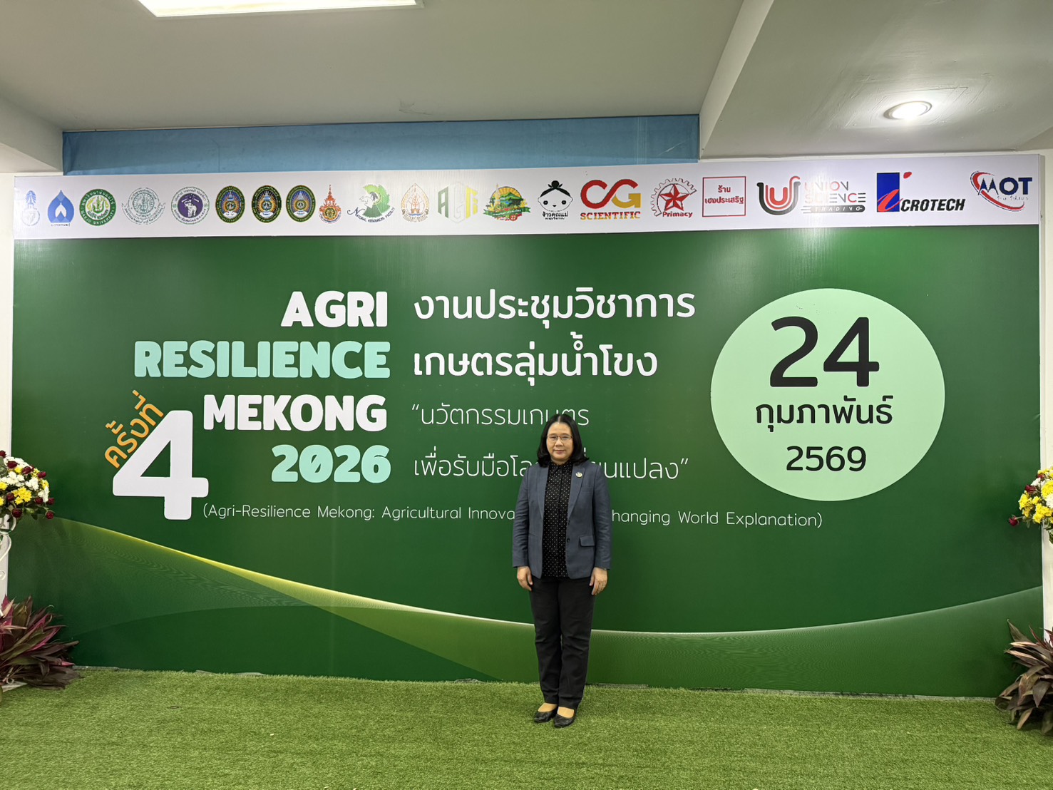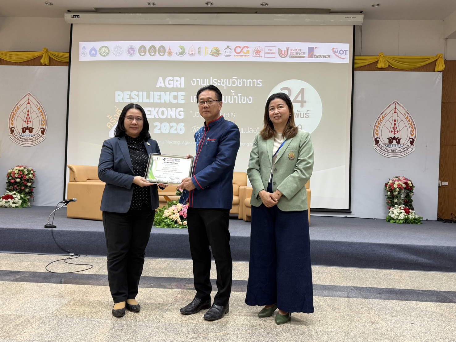 เข้าร่วมในพิธีเปิดงานและรับมอบใบประกาศเกียรติคุณเจ้าภาพร่วม ในงานประชุมวิชาการระดับชาติ “เกษตรลุ่มน้ำโขง ครั้งที่ 4 ประจำปี 2569” จัดขึ้นโดยคณะเกษตรและเทคโนโลยี มหาวิทยาลัยนครพนม การเข้าร่วมงานในครั้งนี้มีประเด็นสำคัญ คือ ปาฐกถาและการเสวนาวิชาการ ร่วมรับฟังปาฐกถาพิเศษเรื่อง “อนาคตเกษตรกรรมลุ่มน้ำโขง ความท้าทาย โอกาสและทิศทางการพัฒนาอย่างยั่งยืน” โดยผู้ว่าราชการจังหวัดนครพนม และการเสวนาในหัวข้อ “Agri-Resilience Mekong นวัตกรรมเกษตรเพื่อรับมือโลกเปลี่ยนแปลง” โดยคณะวิทยากรผู้เชี่ยวชาญ การนำเสนอผลงานวิจัย กิจกรรมนี้เป็นเวทีแลกเปลี่ยนความคิดเห็นและนำเสนอบทความวิจัย ทั้งในรูปแบบบรรยาย (Oral Presentation) และรูปแบบโปสเตอร์ (Poster Presentation) ของอาจารย์